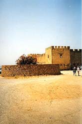 Die Festungsruine, im 14. Jahrhundert von den Venezianern errichtet, im 19. Jahrhundert von den Tuerken fast vollstaendig zerstoert, jedoch von ihnen wieder aufgebaut, liegt in der Region von Sfakia direkt an der Suedkueste Kretas cirka in der Mitte zwischen Chora Sfakion und Plakias, etwa 70 km von Rethymnon und Chania und etwa 140 km von Heraklion entfernt. Ihr Erscheinungsbild mit den vollstaendig erhaltenen Aussenmauern und Ecktuermen ist mittlerweile zu einem beliebten Postkartenkartenmotiv avanciert und duerfte Aussenstehenden wohl fast ebenso bekannt sein wie andere beliebte Ausflugsziele in Kreta. Zu erreichen ist Frangokastello vom Norden der Insel aus am besten mit dem Auto ueber die Passstrasse entlang der Imbrosschlucht bis zur Suedkueste und dann in oestlicher Richtung entlang der Kuestenstrasse, oder aber von Rethymnon aus auf der Hauptstrasse Richtung Agia Galini, dann rechtzeitig in westlicher Richtung abgezweigt in Richtung Rodakino und weiter an der Suedkueste.