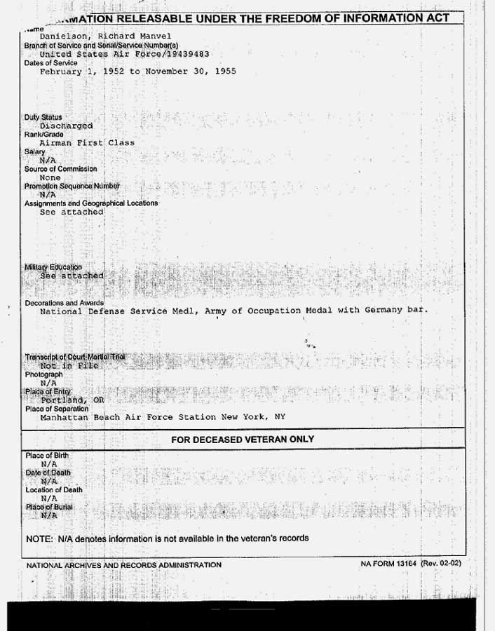 Am 5. Dezember 2014 ist mein leiblicher Vater Richard M. Danielson in Wisconsin verstorben. Moege seine Seele in Frieden ruhen. Margaretha Rebecca Hopfner, Wien 2014 |