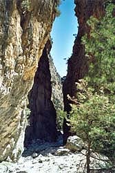 In den Sechzigerjahren wurde die Samaria-Schlucht zum Nationalpark erklaert, und der Europarat kuerte sie zur schoensten Schlucht in ganz Europa. Tausende Touristen wandern in den Sommermonaten taeglich auf einem streng vorgegebenen Pfad die 16 km von Xiloskalo auf der Omaloshochebene (42 km von Chania entfernt) bis nach nach Ajia Roumeli am Lybischen Meer. Zahlreiche Forstangestellte achten sehr genau auf die Einhaltung saemtlicher Spielregeln (Nichtabweichen vom erlaubten Weg, Rauchverbot mit Ausnahme besonderer gekennzeichneter Stellen, Einhaltung der Ruhe, um die Tiere nicht zu stoeren etc.). Viele Wanderwillige sind mit voellig unzureichendem Schuhwerk unterwegs, oder aber sie unterschaetzen die Strapazen, denen sie waehrend der stundenlangen Wanderung ueber Stock und Stein und grosser Hitze ausgesetzt sind. Moeglicherweise liegt dies aber auch daran, dass von den Veranstaltern der Wanderungen nicht eindringlich genug vor Geschaeftsabschluss auf diese Gefahren hingewiesen wird, die fuer Menschen mit gesundheitlichen Problemen (z.B. im Bereich Herz-Kreislauf) tatsaechlich sehr ernst werden koennen, steht doch immer das Verkaufsinteresse im Vordergrund. Es genuegt eben nicht, wenn dies der Reisefuehrer erst im Bus waehrend der Fahrt auf die Omalos-Hochebene tut und die Leute dann zum Teil gehoerig erschreckt. Wer aber waehrend der Wanderung gar nicht mehr weiterkann, fuer den befinden sich in der Schlucht Eselchen als "Taxis", die die tatsaechlich Gehunfaehigen zum Schluchtausgang transportieren.