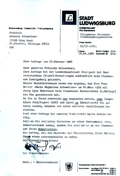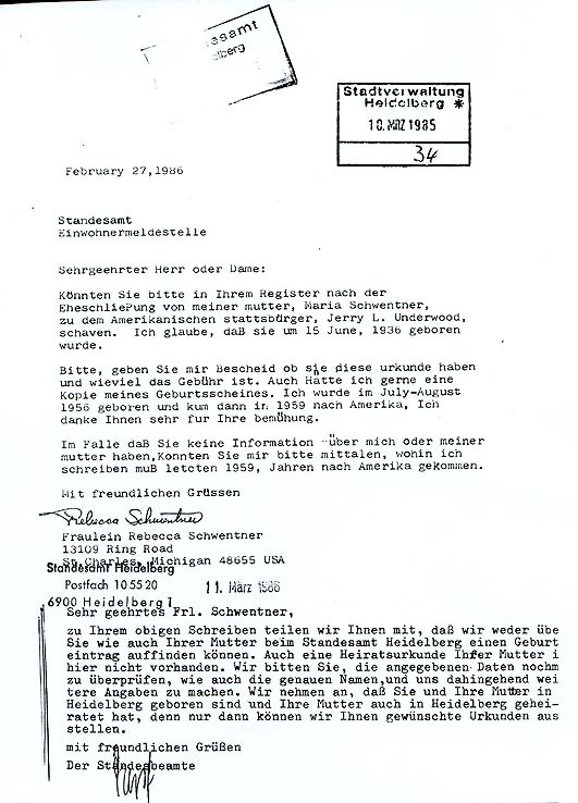 Anmerkung: Joan E. Keller suchte mich im Auftrag meines leiblichen Vaters Richard M. Danielson.