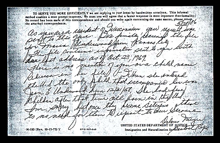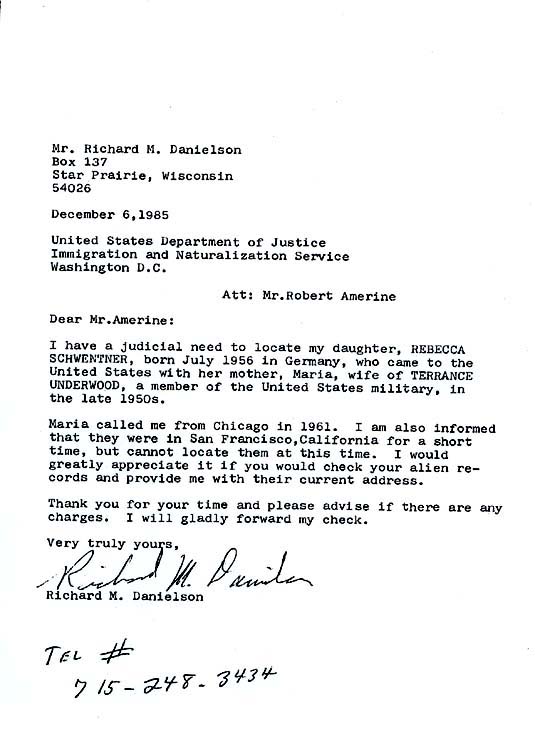 Kontakt aufgenommen! Die Konstruktion der Suche nach mir diente der Argumentation innerhalb seiner Familie, er habe seinerzeit nichts von mir gewusst. Meine leibliche Mutter Maria M. Schwentner gab allerdings bereits anlaesslich meiner Geburt der Behoerde bekannt, er habe ihr gegenueber seine Vaterschaft zu mir anerkannt! |